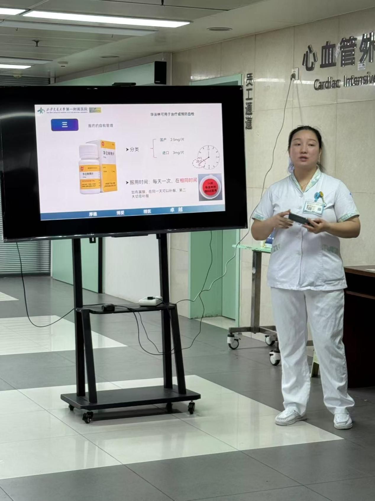刘媛护士以通俗易懂的语言解释了抗凝药物的作用机制,并重点讲解了华法林、利伐沙班等常用抗凝药物的服用方法、注意事项及潜在风险。“抗凝药是一把双刃剑,用得好可以预防血栓,但过量可能导致出血。”刘媛护士通过互动问答的形式,帮助患者理解国际标准化比值(INR)监测的重要性,并提醒患者定期复查、避免与某些食物或药物的相互作用。