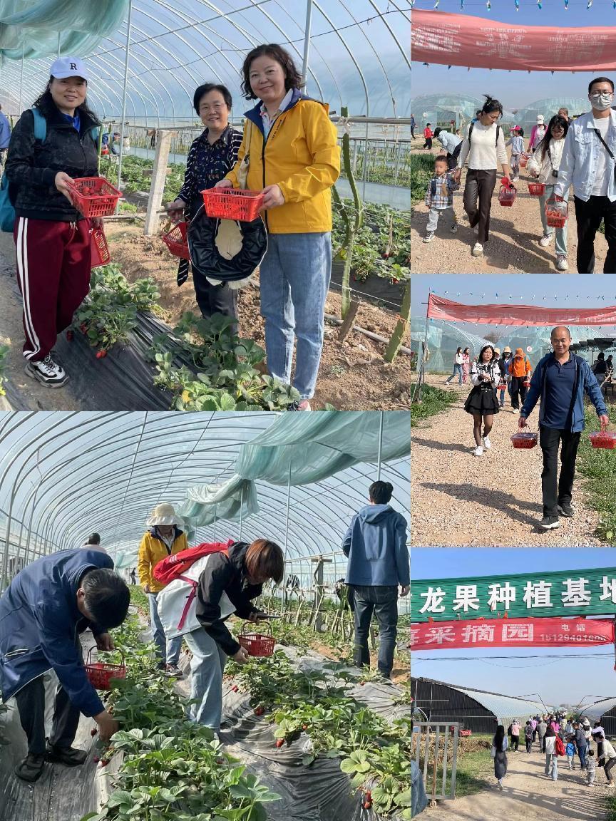 一路欢歌笑语、一路窃窃私语,大家好不惬意啊!途中领队组织大家做手指操、韵律活动、学说绕口令、活动头颈肩等已缓解旅途疲劳,很快就到达目的地之一:草莓园。