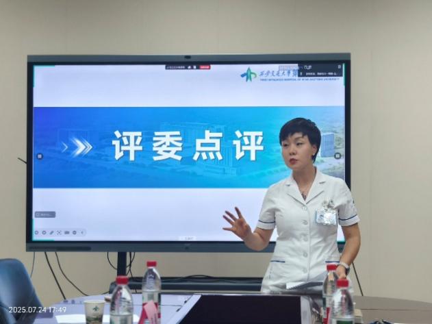 梅娜护士长表示:“从汇报中可以看到每位专科护士的成长和突破,但若能在案例总结的深度和高度上进一步凝练,必将实现质的飞跃。”王娟护士长着重强调:“优质的个案护理应如量身定制,需要紧扣患者个体特征展开深入思考。当前部分案例虽选题精准,但在个性化干预措施的呈现上仍需深化。”肖奇贵护士长从学术角度提出:“案例分享要突破传统查房模式,聚焦护理难点,深挖案例背后的循证依据和学术价值,真正体现专科护理的深度思考。”最后,李娟利总护士长总结性指出,本次汇报的部分案例亮点突出,但若能进一步深化循证思维、突破传统查房模式,聚焦核心问题精细化剖析,必将实现更高突破。她强调,专科护士不仅要解决临床问题,更要善于凝练经验、总结规律,从个案中提炼护理常规,推动学科创新发展。