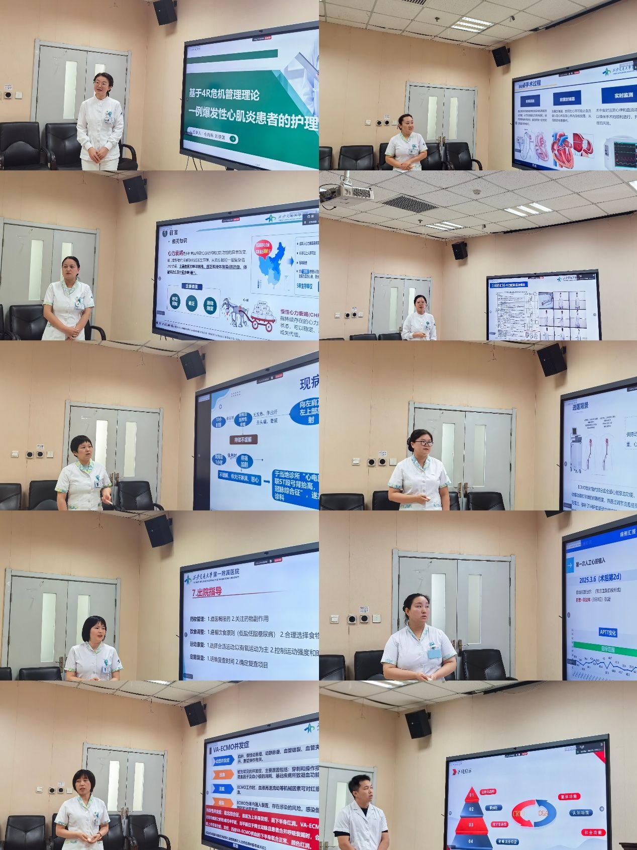本次活动由心内科王婧副护士长主持,采用线上线下联动模式,总院、东院、陆港院区及榆林医院四院区同步参与。16位参赛选手依次汇报,在8分钟的限时展示中,聚焦"疑难危重症护理""老年综合评估""质量改进""罕见病管理"等前沿领域,通过"爆发性心肌炎4R危机管理""心衰患者精细化容量调控""急性下肢动脉闭塞个体化护理"等典型案例,以循证为基、数据为据,层层剖析病情演变,生动呈现临床场景,充分彰显了专科护士卓越的临床洞察力、精准判断力及个性化护理方案的制定能力。