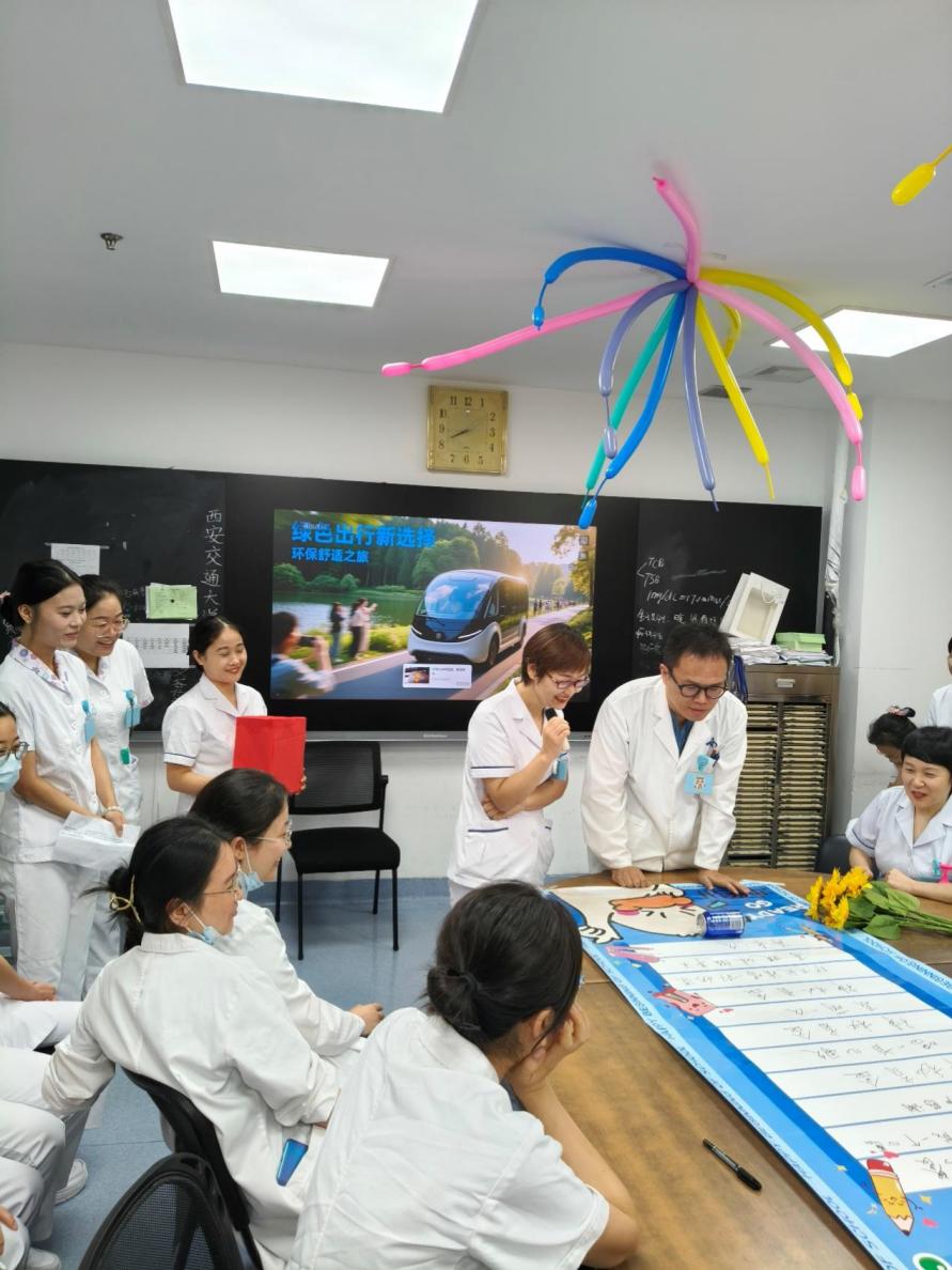 紧接着,互动小游戏“滚滚乐”将现场气氛推向了高潮。在画布上,十个各具特色的小游戏格子整齐排列,“喜提休假半天”、“护士长请喝一杯奶茶”、“神秘盲盒”、“唱一首儿歌”、“现场完成一个心愿”、“主任请吃三秦套餐”等,每一个格子都充满了惊喜与欢乐。医师们手持可乐瓶,在画布上滚动,瓶口指向哪个格子,便要按照规则进行游戏。现场笑声、掌声此起彼伏,大家在轻松愉快的氛围中,增进了彼此的友谊与默契。