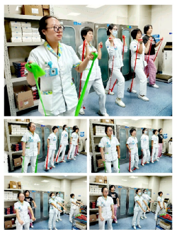 本次培训充分利用午间休息时间,在心内科治疗室进行,得到了全体护士的积极响应和参与。培训内容紧扣临床实际需求,系统全面,涵盖了上肢训练、下肢训练、坐位及站位弹力带训练、站立哑铃训练等多个核心模块。刘悦老师通过理论讲解、动作分解示范和一对一指导相结合的方式,细致阐述了每一项训练的动作要领、适用人群、注意事项以及潜在风险防范,确保每位护士都能听得懂、学得会、用得准。训练现场学习气氛热烈浓厚。参训护士们精神饱满,不畏辛苦,反复练习每一个动作,相互切磋纠正,并就临床中可能遇到的问题与指导老师进行了深入交流和探讨。通过这次培训让护士们掌握了科学、安全的康复训练方法,从而能更精准、有效地指导患者进行术后及康复锻炼,改善心肺功能,提升生活质量。