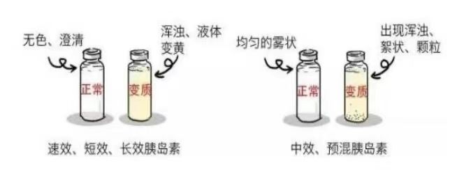 1、看外观:清澈型胰岛素(如门冬、赖脯、甘精胰岛素等)应像水一样清澈透明,一旦出现浑浊、变色、絮状物或颗粒,立即丢弃;混悬型胰岛素(如预混胰岛素)正常状态下是乳白色的,但如果摇晃后不能形成均匀的雾状液体,或出现颗粒、块状物,也说明已失效。
