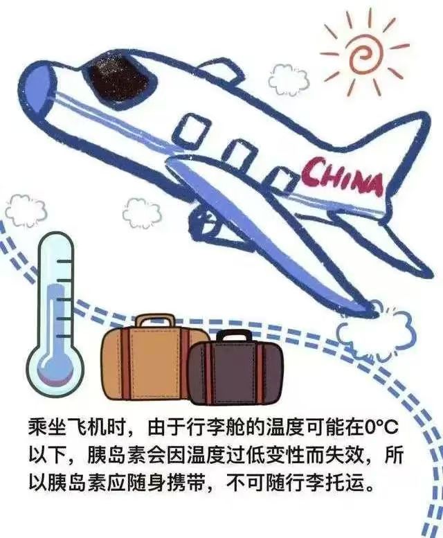 正解: 汽车后备箱夏季温度极高,极易导致胰岛素失效;飞机托运舱温度过低,可能冷冻胰岛素。胰岛素必须随身携带。
