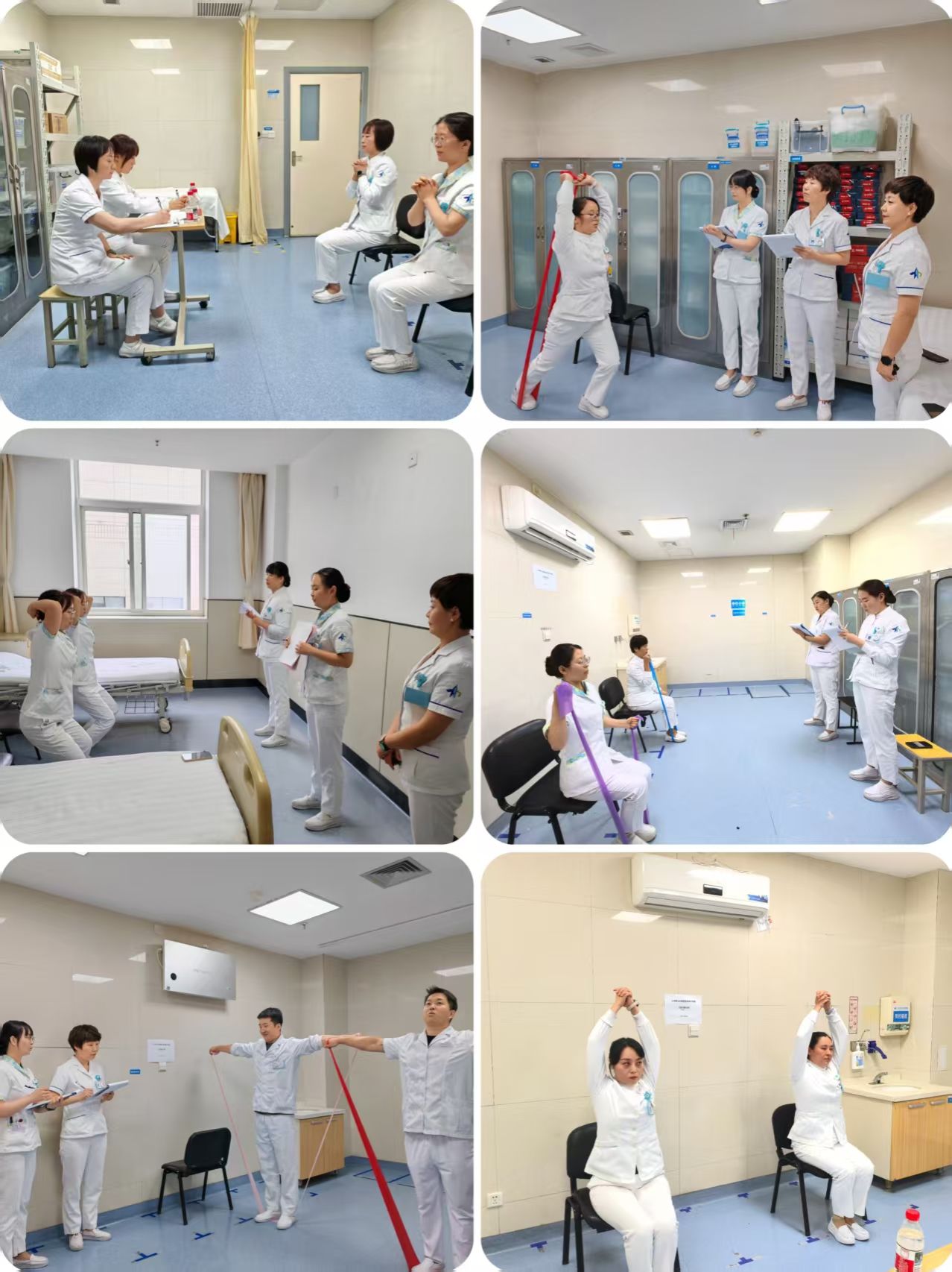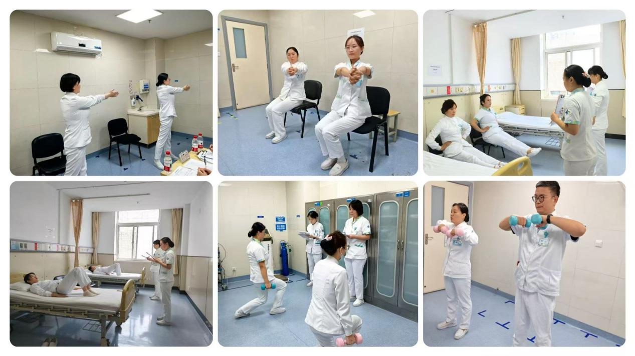 为进一步提升护理团队的专业技能水平,推动科室康复护理工作科学化、规范化开展,在李娟利总护士长的统一部署下,由李静护士长精心策划,心血管内科于8月29日下午成功组织开展全体护理人员康复技能考核。本次考核涵盖上肢功能训练、下肢功能训练、立位弹力带训练、坐位弹力带训练及哑铃操训练五项核心康复技能,旨在以考促学、以学促用,打造一支技能扎实、与时俱进的优质护理队伍。