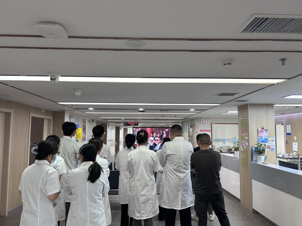 在整个观看过程中,医生和护士们也一直陪伴在患者身边,不仅为他们提供必要的护理服务,还和他们一起分享着这份喜悦和自豪。此次在病房走廊组织观看阅兵活动,不仅让患者和家属们感受到了医院的人文关怀,也进一步激发了大家的爱国热情和民族自豪感。