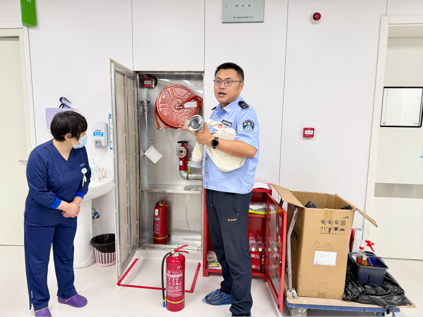 此次培训兼顾CCU区域设备密集、患者病情危重的特殊性。活动的第一阶段,保卫科老师结合近期医院安全案例,从基础消防知识讲起:详细解读了CCU内常见火灾隐患——如器械设备线路老化、使用不当以及隐藏线路出现问题难以及时发现等问题,提高了大家对于防火的安全意识以及重视程度。