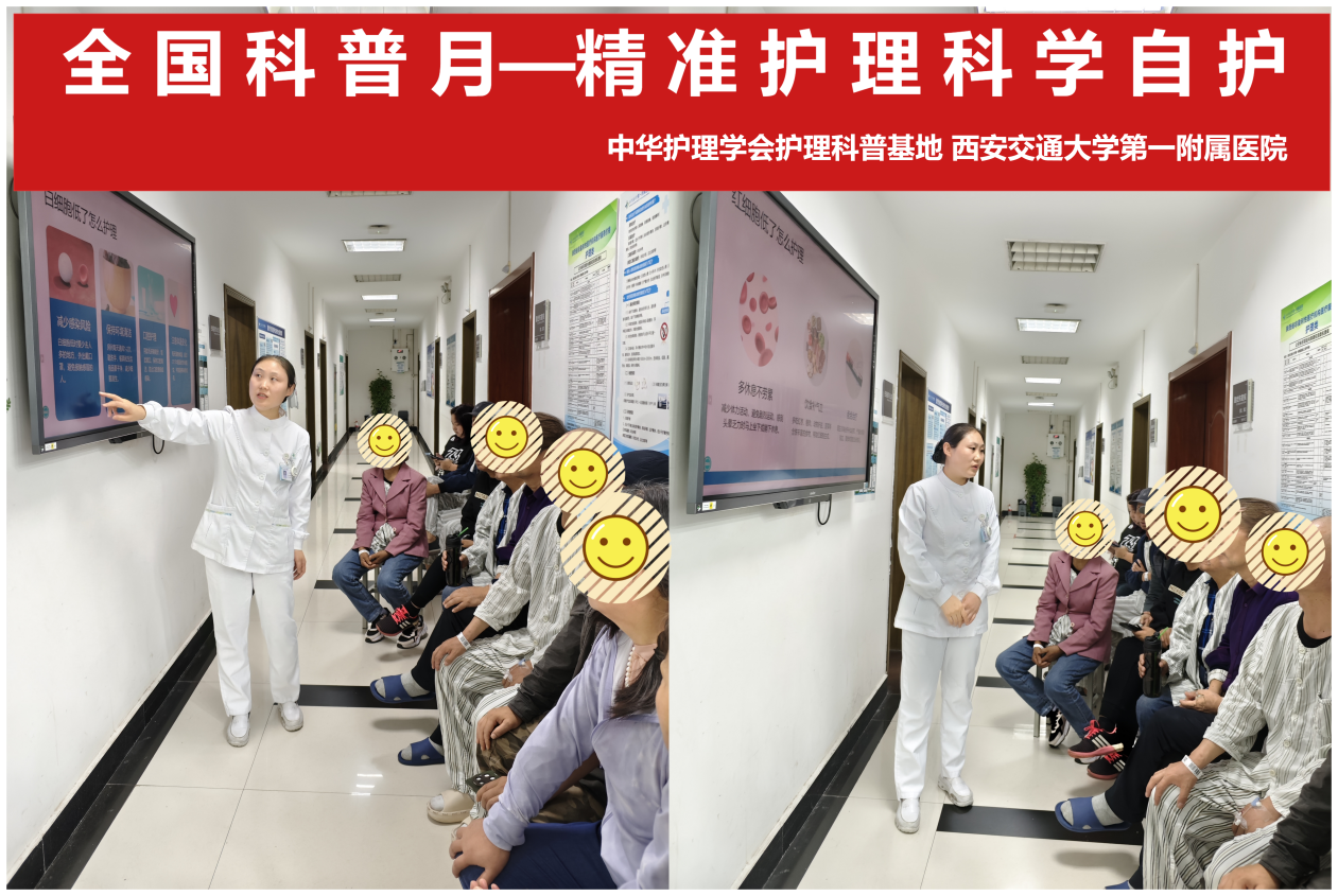 九月的古都长安,秋阳轻柔铺洒,丹桂幽香萦绕。正值2025年全国科普月期间,9月23日下午,西安交通大学第一附属医院放疗二病区内,一场以“精准护理 科学自护”为主题的健康宣讲活动温情启幕。此次活动紧扣肿瘤患者核心健康需求,由主管护师王皎与护理师王珍担任主讲,分别围绕“低血象护理”与“输液工具选择”两大主题展开专业科普,为现场患者及家属点亮科学抗癌的希望明灯。