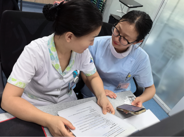 通过带教老师的悉心指导,我深刻认识到,肿瘤内科的护理,是一场对“细节”的极致诠释。患者因长期治疗导致的血管纤维化、因药物副作用引发的消化道反应、因病情进展产生的心理波动……每一处细微变化,都是护理干预的信号。在陈小芳老师以及各位带教老师的悉心指导下,我慢慢学会在晨间护理时,通过患者的精神状态判断其睡眠质量;在输液巡视时,凭借患者主诉警觉药物不良反应;在健康宣教时,结合患者的文化程度与认知特点调整沟通策略。这些看似琐碎的观察与应对,实则是肿瘤护理的“史诗”片段。于细节处见真章,于微变中定决策,这是肿瘤内科护士的专业“修行”,更是对生命的敬畏表达。