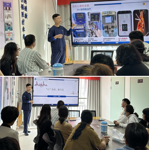三、结合临床实际,薛豪 护理师 讲解“心危机,新方法”,为患者讲解近年来 ,在治疗方法和技术方面 最新方式 , 如急性心衰的相关知识以及最新辅助装置等,这些治疗方式 为 患者和家属 带来了新的希望和更好的治疗前景。 如中心为心衰患者 实施一项更加安全的创新术式——小切口、不动胸骨、不停心跳的微创 左心室辅助装置 植入术。这项 “微创+不停跳” 手术,对医生的要求极高,堪称毫米级精度。 无数濒临死亡边缘的患者在人工心脏的帮助下重获新生。而 在 闫炀 带领下的我们中心 团队的目标,远不止于此。 不断 研究更轻便、更仿生的人工心脏材料,减少血栓风险;努力开发无线充电技术,摆脱体外电池,让心脏重启也能无感操作; 甚至也在 在探索双心辅助,为更严重的心衰患者争取时间。