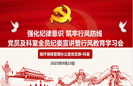 为深入贯彻落实全面从严治党要求,切实强化医务人员纪律意识与职业道德素养,2025年9月23日,医疗保险管理办公室党支部及科室在科教楼101室联合召开“强化纪律意识 筑牢行风防线”行风教育学习会。科室全体党员、职工参会,王小莉主任、张美荣副主任、杨茜副主任全程参与,实现了 “纪律教育 + 医德培育” 双轨并行的学习效果。