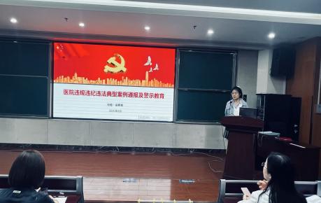 会议伊始,纪检监察室刘忆玲同志带来《医院违规违纪违法典型案例通报及警示教育》及党纪法规专题宣讲。刘忆玲同志通过 “案例还原与法条对照” 的方式,重点围绕多起医疗服务、基金监管领域的典型案例展开剖析,以鲜活的教训、深刻的反思,为全体人员敲响了廉洁自律的警钟。在党纪法规延伸学习环节,刘忆玲同志结合《中国共产党纪律处分条例(2024年)》《中华人民共和国公职人员政务处分法》,重点解读了科室主任、党支部书记“一岗双责”要求,明确若对职工违规行为存在“该发现未发现”情形,将依规给予批评教育、通报批评等问责处理,进一步压紧压实管理责任。