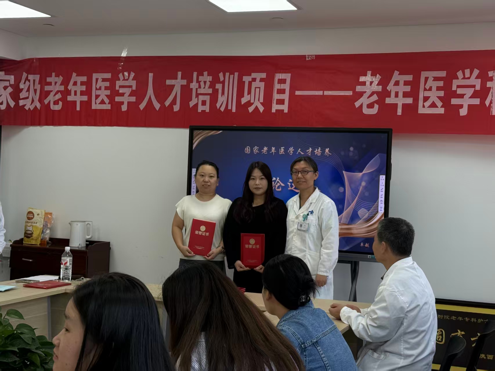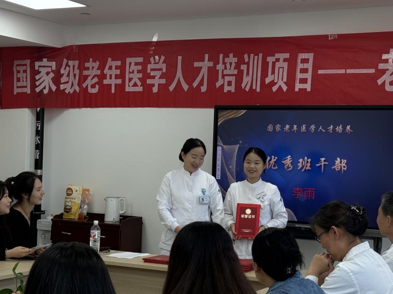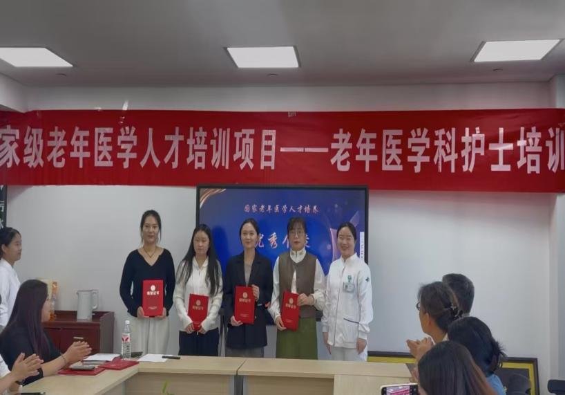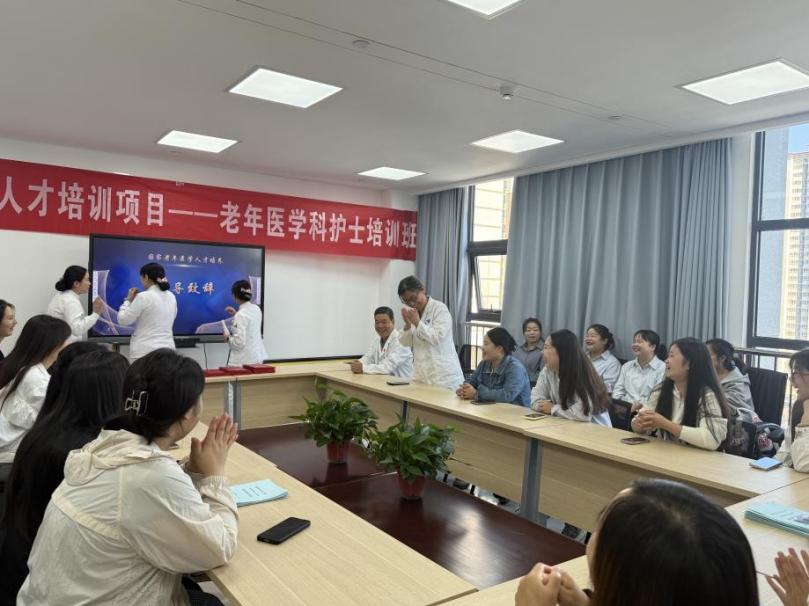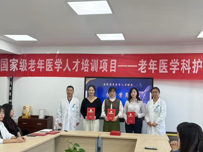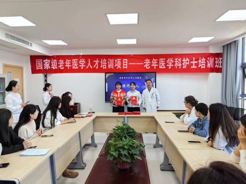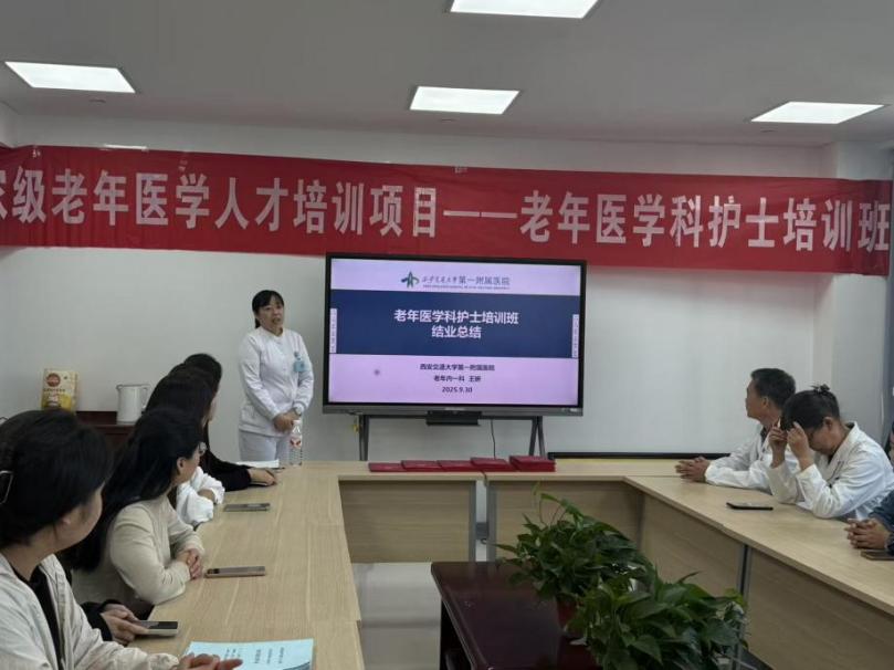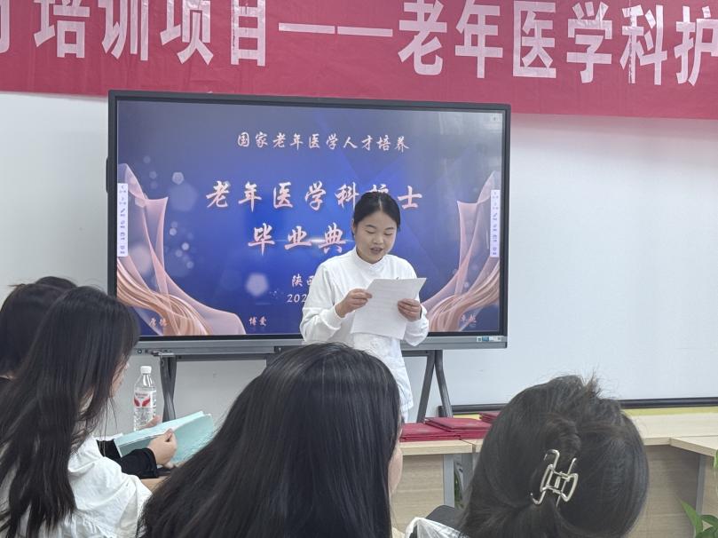 秋风起兮叶满天,硕果累累正丰年,在这个美好时节,根据国家卫生健康委要求,由陕西省卫健委老龄健康处统一部署,我院医务部精心安排,老年医学科具体承办的“国家老年医学人才培养—老年医学科护士培训班”于2025年9月30日上午在老年医学科接待室举行了毕业典礼。30名学员经过1周的理论和3 周的实践,圆满完成了全部培训课程。本次毕业典礼由老年医学科护士李雨主持。