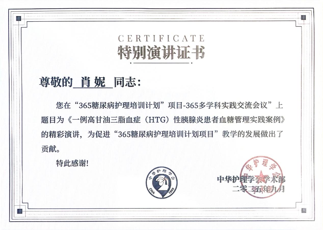 近日,在河南省人民医院举办的中华护理学会“365糖尿病护理培训计划”多学科实践交流会上,我院重症医学科肖妮主管护师凭借《一例高甘油三脂血症性胰腺炎患者血糖管理实践案例》,从全国17个省、68项参赛案例中脱颖而出,成功入选大会优秀案例并作现场分享。