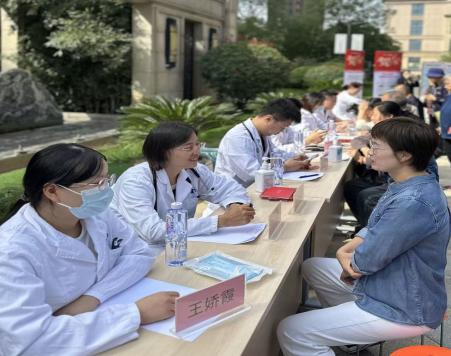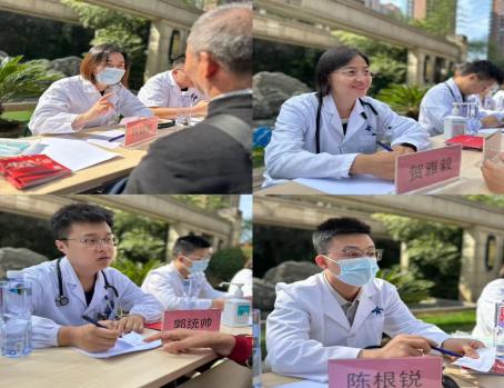 活动现场心血管内科副主任肖懿慧带领团队,陈根锐、郭统帅、陈长、王娇霞医生、内分泌贺雅毅副主任医师面对面为居民答疑解惑,耐心解答居民关于心血管疾病的种种疑问,从心血管疾病的预防、治疗及康复等方面进行了细致入微地讲解,以专业的态度和精湛的医术,为每一位前来咨询的居民提供了个性化诊疗建议。