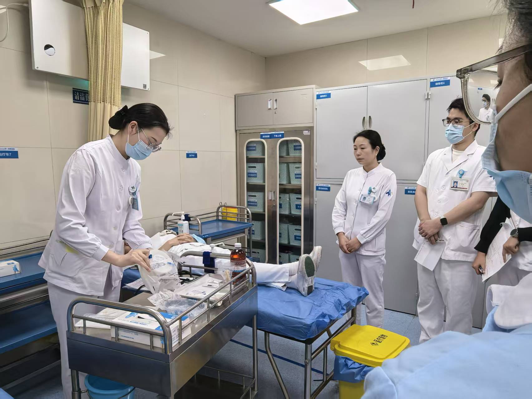 为进一步提升护理人员专业技能与综合素质,泌尿外科继续教育组在三位护士长指导下,于9月开展系列继续教育活动。活动采用线上线下结合模式,涵盖1次护理查房、2次床旁培训、3次操作技能提升培训及1次应急预案演练。本月护理查房围绕“神经源性膀胱继发血块填塞”疑难病例展开,由三级护士郭婷、一级护士卢媛担任主查人。两位护士结合病例特点,深入浅出分析诊疗要点与护理难点,分享临床经验。总院区与东院区全层级护士(含进修、规培及实习护士)通过线上线下同步参与,实现知识共享与跨院区交流。