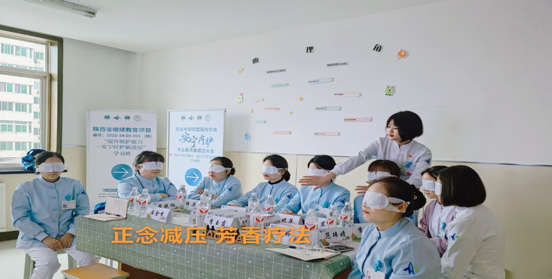 李茸护士长特别设计的芳香疗法工作坊和“大风吹”减压游戏,让学员亲身体验“身心同护”的理念。当玫瑰、甜橙等精油的舒缓香气在空气中弥漫,学员们闭上眼睛,跟随舒缓的音乐进行深呼吸与冥想。有学员表示,这是自己第一次尝试芳香疗法,“在香气的包裹下,能清晰地倾听身体的声音,紧绷的神经慢慢放松,疲惫感也随之消散,这种身心同频的体验让我深受触动,也让我明白,未来在护理患者时,更要关注他们的感官体验与心理状态,用更细腻的关怀帮助患者缓解痛苦。”