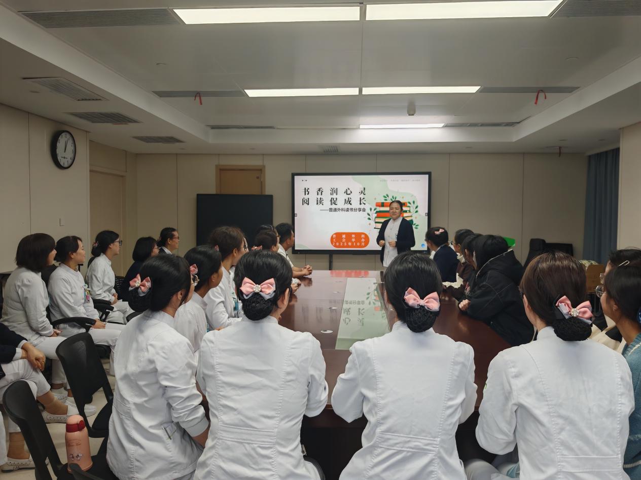 为深入学习全民阅读,建设书香社会的重要指示精神,在院工会的支持下,10月20日在外科大楼8楼会议室,普通外科工会成功举办“书香润心灵,阅读促成长”主题读书分享会,用书香充实心灵,锻造医护团队人文素养,丰富科室医疗文化,普通外科工会主席:乔莉娜总护士长,工会副主席:廖新华教授,工会组织委员:王惠君副护士长及普通外科近40名医护人员共赴美好读书时光!