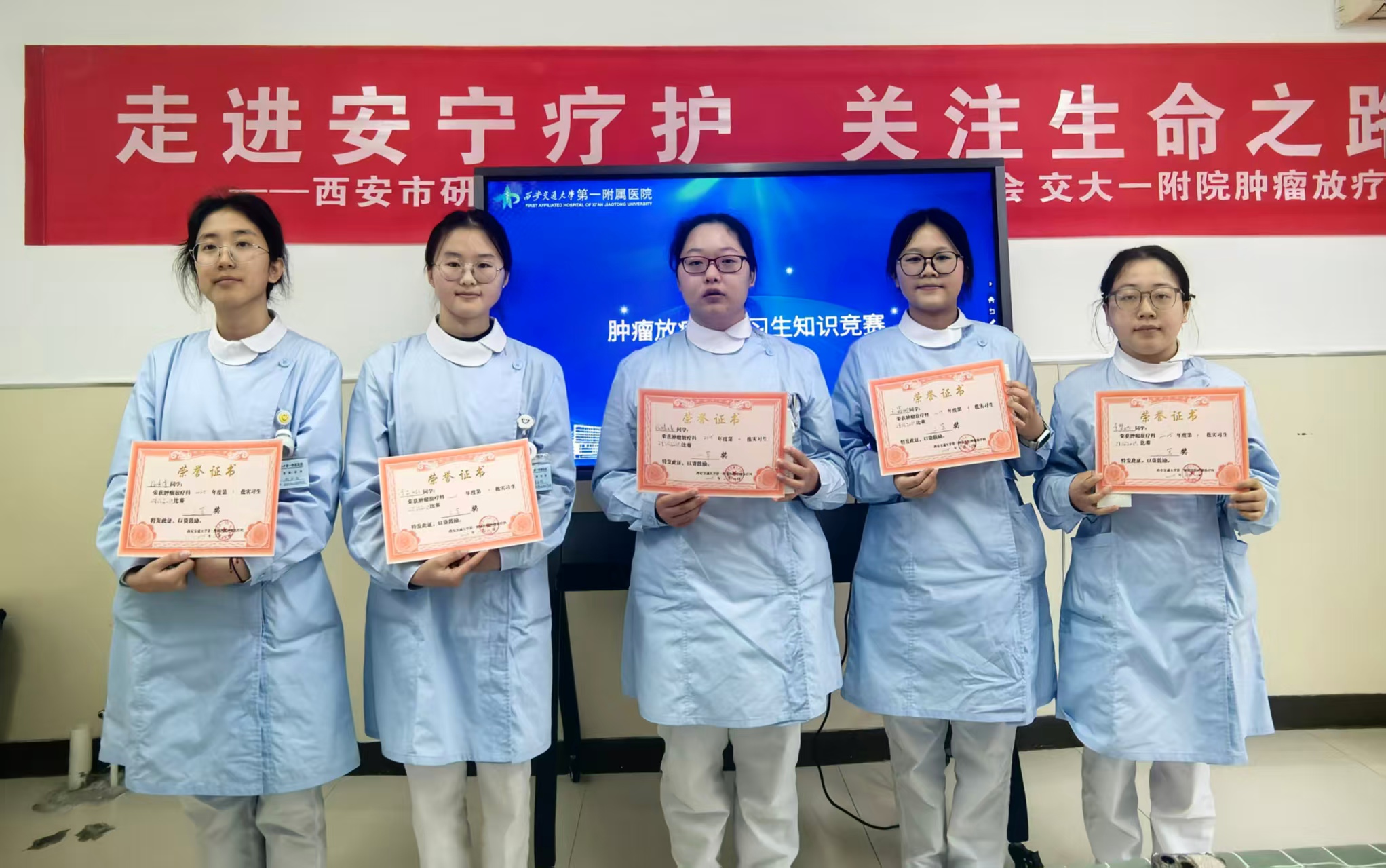 此次竞赛既是对实习生们轮转期间学习成果的全面检验,也是科室对他们的殷切期许。相信在肿瘤放疗科各位老师的悉心指导下,这5位年轻的护理人员定能带着收获与成长,在守护生命健康的道路上稳步前行,绽放属于自己的光彩。