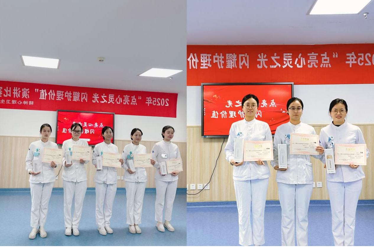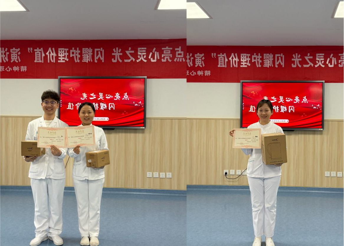 经过激烈的角逐, 护士杨薇 演讲的《 一盏灯、一片光、一束光 》 获得一等奖, 及护士 谢清阳 演讲的《 你看不见我的战场,但请看见我的光 》 及王多演讲的《守护心灵的春天——在平凡中见证不凡》 获得 二 等奖,护士 郭蕊、魏妮、韩泽南三 名选手获得三等奖,其余选手获优秀奖。赛后, 护士长梁杏莉 及评委们为参赛选手依次颁发了获奖证书及奖品。