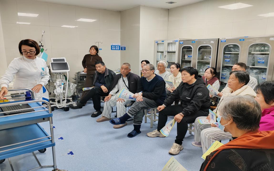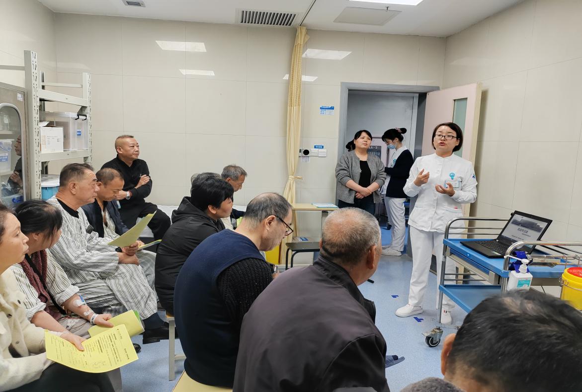 为了患者知晓高血压相关健康知识,树立正确降压的健康信念,践行高血压患者的健康行为,10月23日下午心血管内科一病区组织在院患者在病区开展高血压相关知识健康讲座,由张改花主管护理师进行宣讲——“高血压守卫战,共筑理想血压防线”,以高血压的定义、诊断标准、临床症状、治疗方式、生活方式干预及介入治疗手段等方面展开。