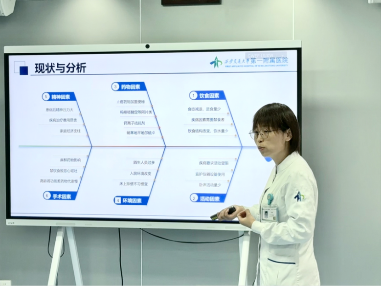 周围血管科的“Stanford B型主动脉夹层围术期便秘预防方案构建与实践”聚焦于AD 病人的预防便秘主题,从精准评估便秘风险患者、健康教育与观念建立、医护一体全流程三方面联合落实,有效避免腹压增加造成夹层撕裂风险,提升患者安全,改善围术期疾病状态与生活质量。
