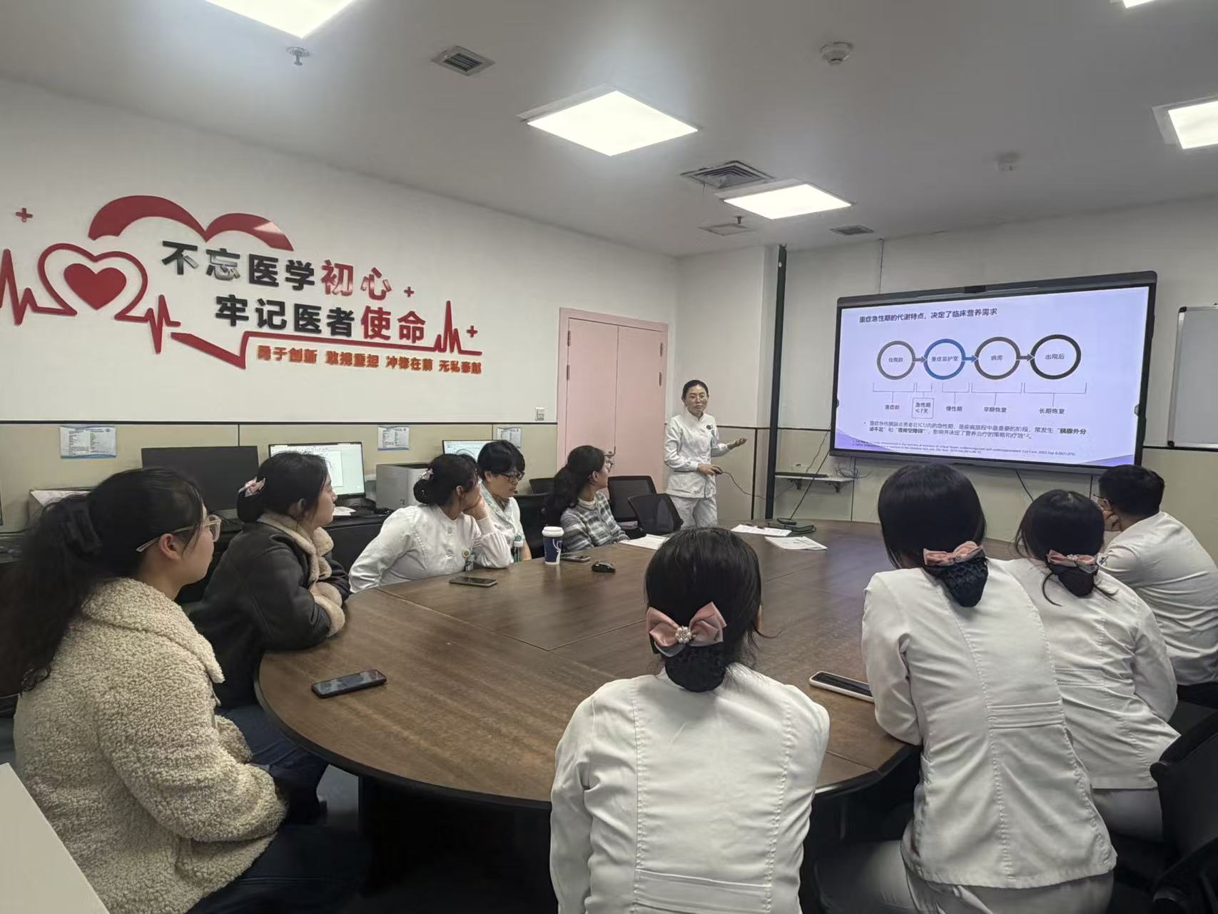 接下来,董芳芳护士长带领全体护理人员深入学习《重症急性胰腺炎患者首选短肽型肠内营养配方》,本篇文献强调由于重症急性期的代谢特点,患者常发生胰腺外分泌不足和胃排空障碍,导致营养吸收不足、能量消耗大。文献推荐采用渐进式肠内营养策略,宜选择短肽型制剂,优选蛋白质水解程度高、二肽或三肽含量丰富的配方,不仅能更快被消化吸收,还有助于维护肠黏膜屏障功能,促进蛋白质合成与机体恢复。