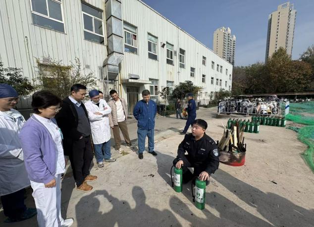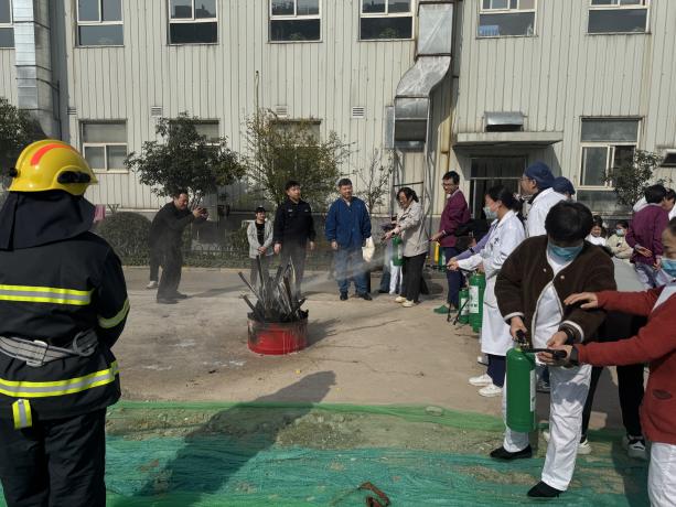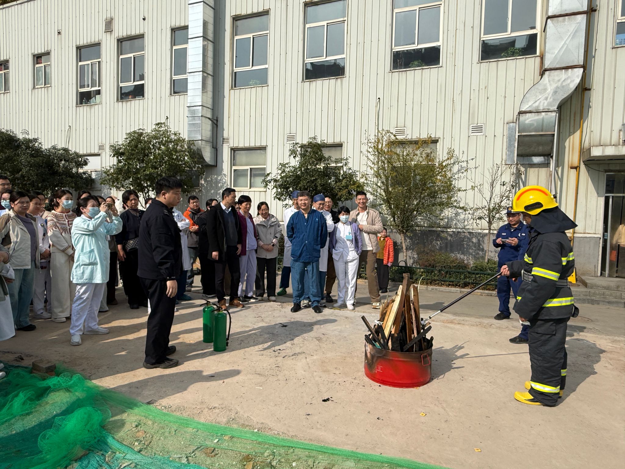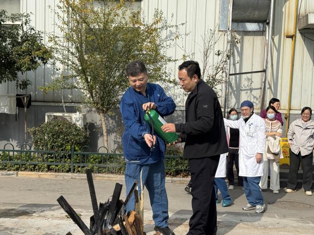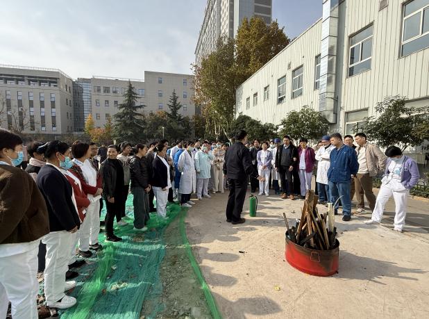为进一步夯实科室消防安全基础,提升全员火灾应急处置能力,切实保障医患生命财产安全,11 月 12 日中午 13:30,心血管外科特邀医院保卫科,在医院东南角广场成功开展了一场针对性强、参与度高的消防演练。科室医生、护士、实习同学、护理员及保洁人员等全体在岗人员共计 60 余名人员在科室闫炀主任及王娟总护士长的带领下悉数参与,以实战化方式学习灭火器规范使用技能。