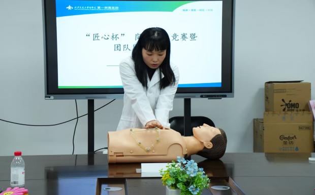 随后,由刘东阳护士长为大家分享“心肺复苏---关键时刻的生命守护”,以专业践行使命,用规范传递力量,每一次标准操作,都是对生命的敬畏与守护。
