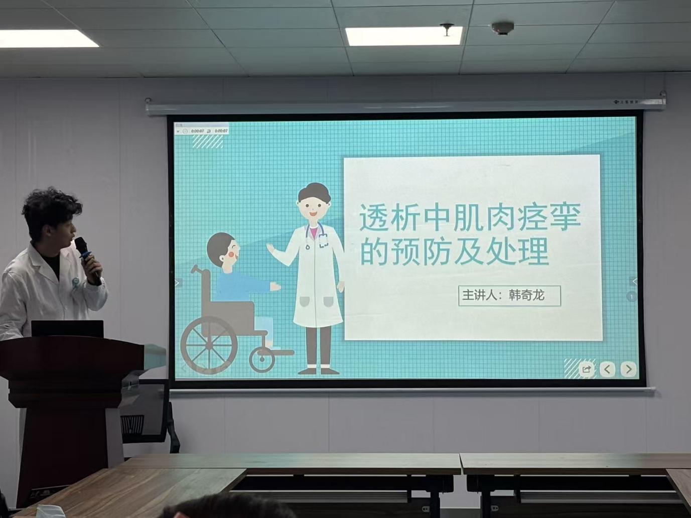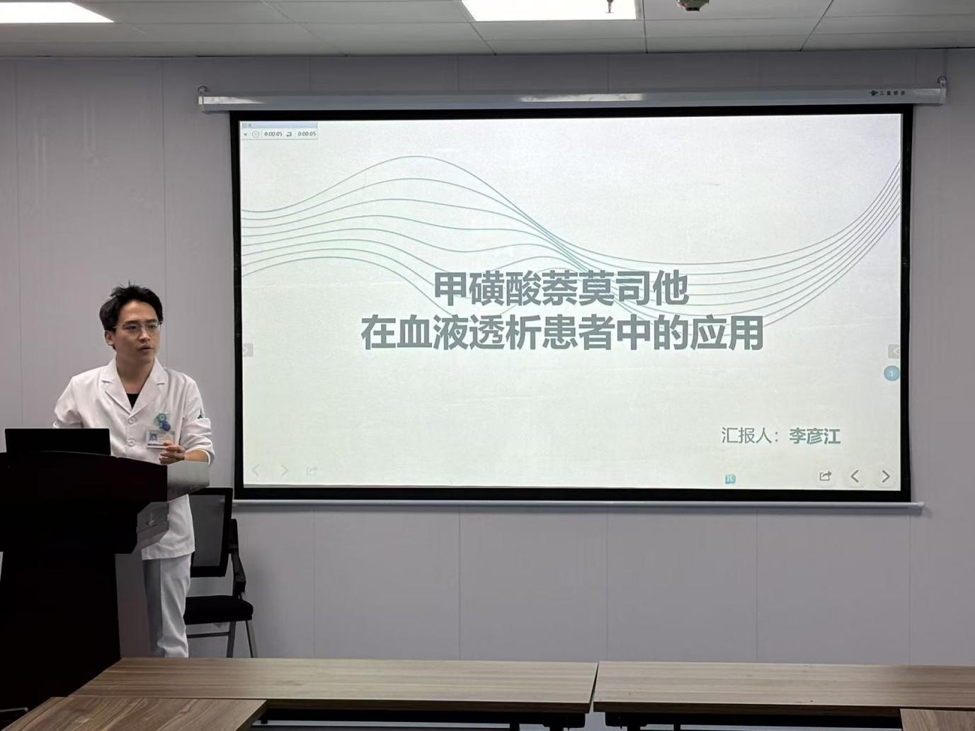 比赛现场氛围紧张而热烈,6名参赛护士按照抽签顺序依次登台授课。选手们结合自身临床实践经验,围绕“血液净化中低血压的护理”“血液透析水处理系统的基本认识”“血管通路维护常见问题及对策”“透析中肌肉痉挛的预防及处理”等核心主题展开讲解。在8分钟的授课时间里,选手们通过精心制作的 PPT 课件,运用案例分析、动画演示、现场提问等多样化教学手段,将抽象的专业知识转化为生动易懂的授课内容。其中来自规培护士李彦江以《甲磺酸萘莫司他在血液透析中的应用》为题,结合科室真实临床案例,详细拆解了该药物的作用机理、用法用量、适用情况以及注意事项,其清晰的逻辑框架与接地气的讲解风格获得评审团一致认可,现场掌声不断。