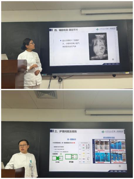 查房围绕一例胎龄32+5周、胎儿期贫血行两次宫内输血、胎儿期腹腔积液的早产儿展开。主管护师赵艳和张瑞静系统汇报了该患儿的病情变化、辅助检查结果、手术过程及围术期护理重点,并带领全体人员共同学习了先天性肠旋转不良的疾病知识、病理机制与护理要点。该病例的复杂性及治疗过程的系统性,为辖区护理人员提供了宝贵的学习素材。