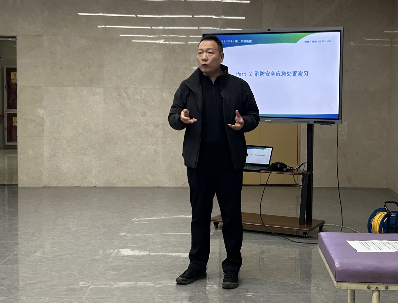 保卫部消防专员朱杰在发言时表示,2025年消防安全宣传月的主题是“全民消防、生命至上——安全用火用电”,放疗科既有大用电量的设备,也有含放射源的设备,临床服务的病人以中老年人居多,消防安全、应急处置、人员疏散等方面压力很大,希望放疗科同事特别是年轻同事能谨记消防安全应急处置流程,不断增强四个能力,保卫部也会按照1分钟响应,3分钟到场,5分钟增援的处置机制,携手做好消防安全相关工作。