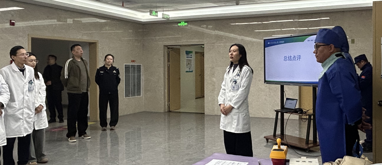 2025年11月21日早,肿瘤放疗科在外科大楼负一层后装治疗区域举办年度应急处置演习,保卫部、基建规划办公室、放射管理办公室等多部门派代表列席演习现场。