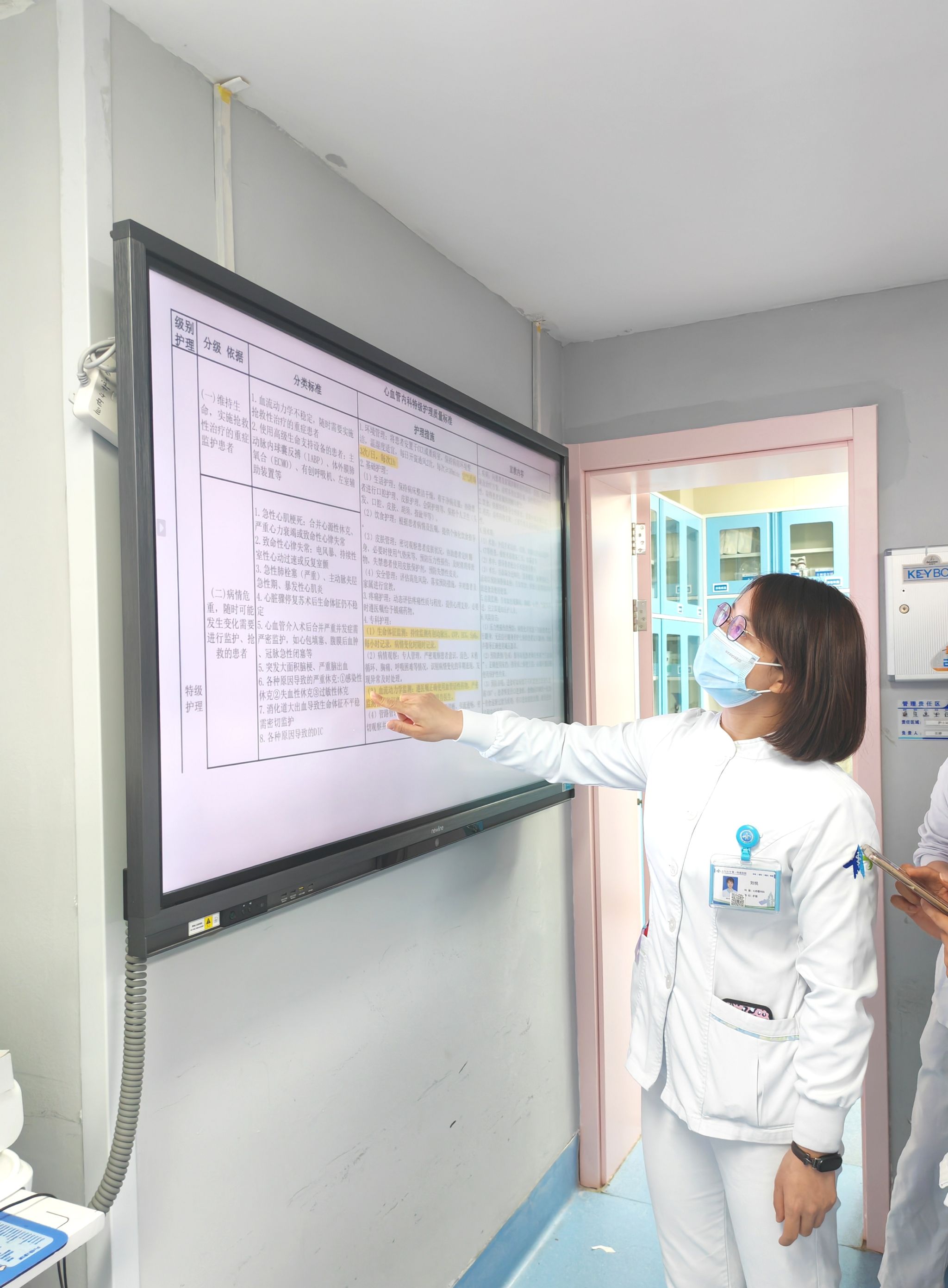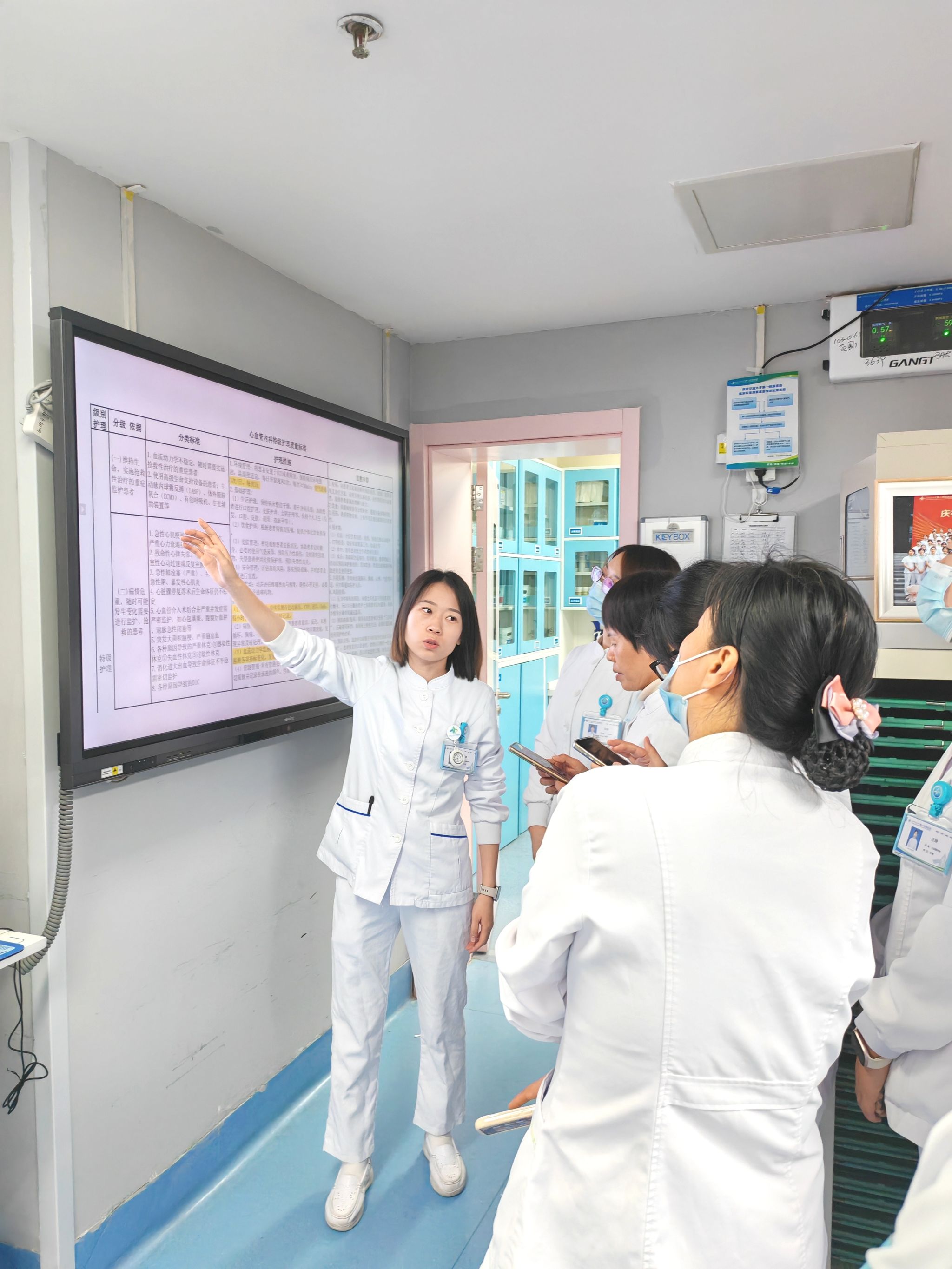 会上,王婧护士长结合心内科患者病情复杂多变的特点,从分级护理的核心定义、各级护理适用对象、具体护理操作要点及质量评价标准等方面进行系统讲解。她着重强调,分级护理是落实“以患者为中心”服务理念的关键,要求护士严格依据患者病情动态调整护理级别,确保服务的针对性与有效性。随后,刘悦护士结合临床典型案例,生动分享了生命体征监测频率把控、基础护理操作规范、患者及家属健康指导等实操技巧,帮助大家快速掌握制度在实际工作中的应用方法。