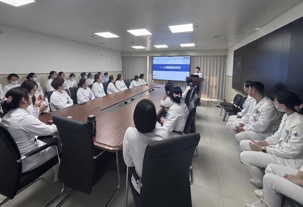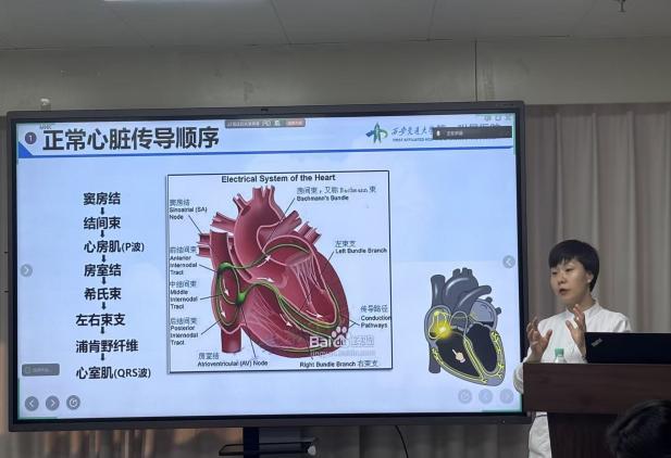 为提高护理团队针对围手术期心血管风险的预警及处置能力,首场讲座特邀请心血管内科李娟利护士长,围绕“心内科护理观察要点在泌尿外科患者中的应用”开展专题分享。该分享紧密结合外科手术特征,着重阐述了正常心脏传导顺序、常见心律失常的识别与处理以及常见心电图的识别等内容。讲座现场学习氛围活跃,护士积极互动提问,就临床实践中遇到的实际问题,与心内科李老师展开深入探讨。通过此次跨学科学习,护士们普遍反馈,对患者病情观察的精准度显著提高,应急处理能力亦得到有效提升。