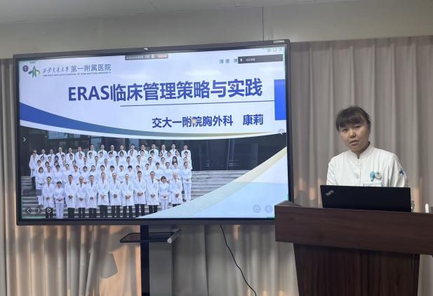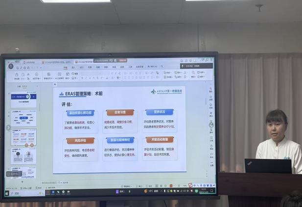 系列讲座第二场聚焦“ERAS理念在泌尿外科围手术期的护理实践”,由胸外科康莉护士长主讲。内容涵盖术前宣教与心理疏导、优化肠道准备,术中保暖、液体管理,术后疼痛精细化评估、早期活动计划执行及营养支持等护理要点。主讲人通过护理案例,讲解如何将ERAS循证措施转化为日常护理标准动作。康老师表示,在ERAS中,护士不仅是执行者,更是教育者、协调者和倡导者,专业照护与耐心指导是消除患者恐惧、推动康复的引擎,道出了护理工作在快速康复中的内涵。
