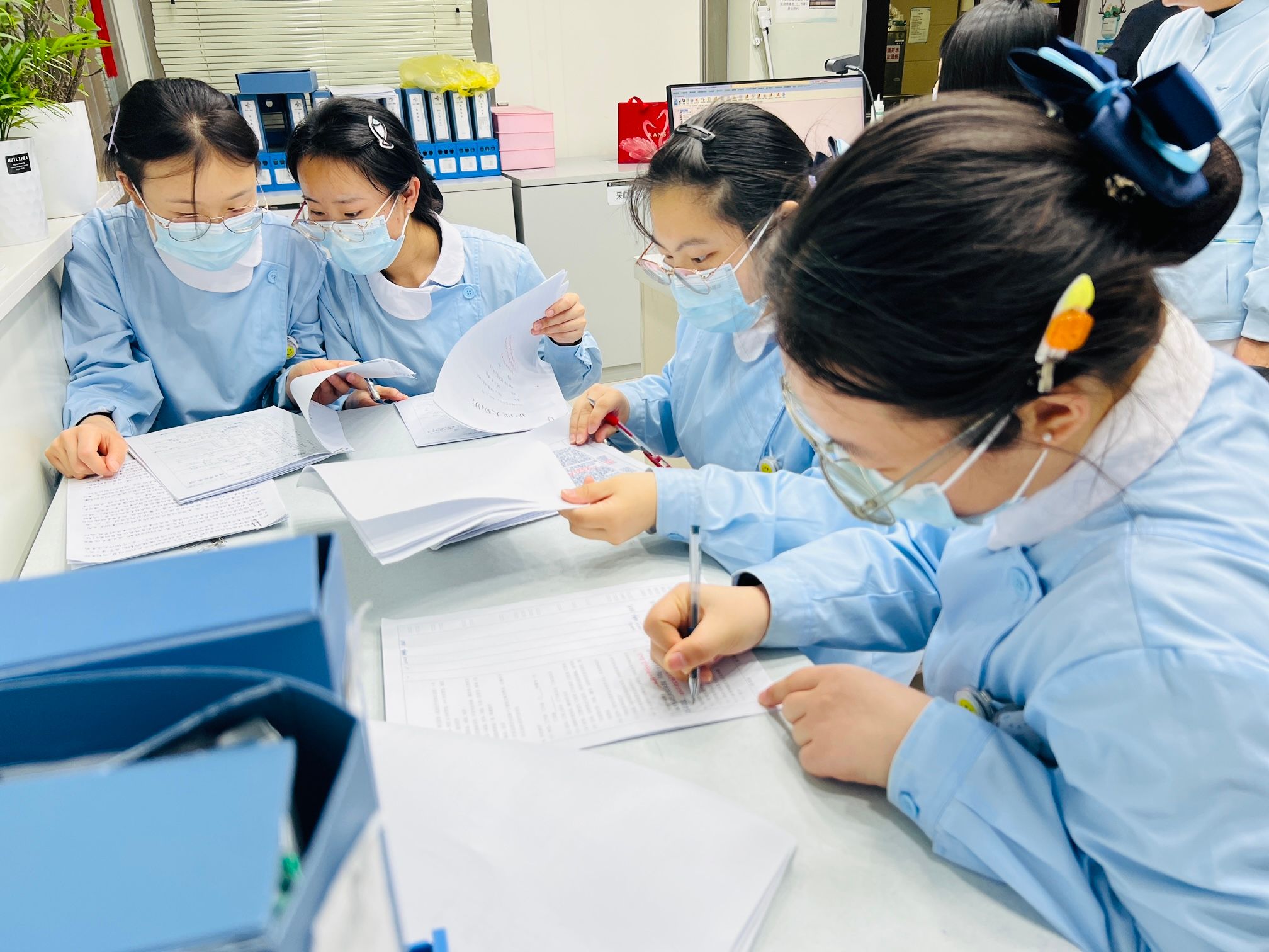 您将疲惫藏于口罩之后,将耐心化作春风细雨,润泽我们这些懵懂的种子。如今,春风走过,荒野上成片的花树,便是对您最好的回答。我们愿以初绽的芬芳,慰藉您所有的辛劳。“你这样持针不对,得这样……这样……”,“你们看我们今天的化疗药物应该是这样……的顺序”,“已经很优秀啦,做的非常棒!”老师们一次次的教导,无声的鼓励,都是实习生们茁壮成长的助力。