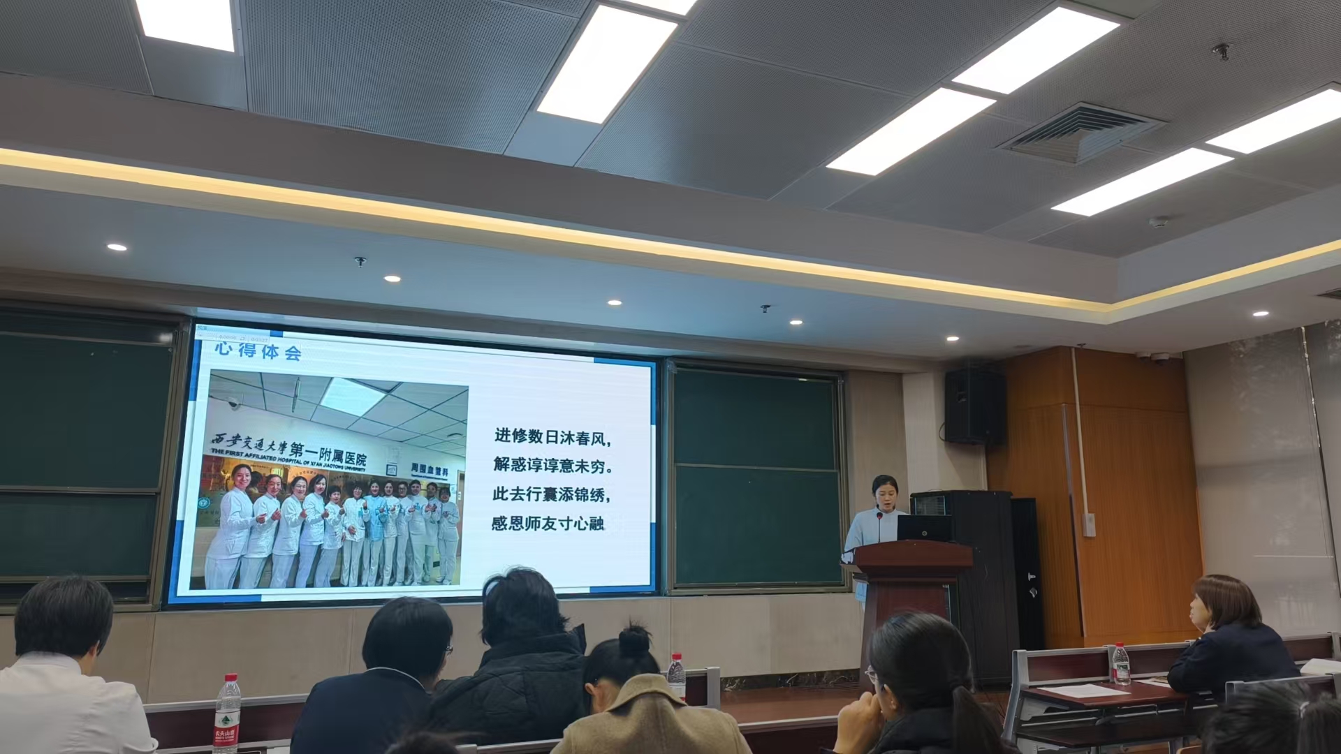 本次护理进修人员来自省内外各地40余人,共同相聚在西安交通大学第一附属医院。进修学员们从实际出发,以脚踏实地的韧劲和干劲,坚持以奋进践初心、以实干显担当,不慕虚荣、不务虚功,方能练就过硬本领。在临床工作中跟随带教老师完成众多复杂又普遍的护理操作,不仅仅学到了各种护理前沿技术,更是扎实了基本功。