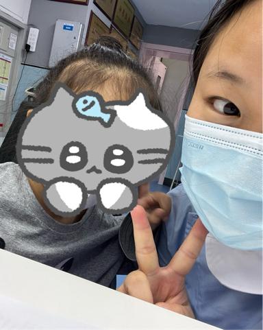嘉琪、冰妍这两个学生身上最打动人的,是那份与生俱来的亲和力与沟通力。面对抗拒治疗、哭闹不止的患儿,她们刚开始也许会手足无措,但很快就会转变方式,不用生硬的安抚,而是蹲下身与孩子平视,用软糯的语气讲起“勇敢小战士打败病菌”的故事;给幼儿做检查时,她们一边操作一边轻声说道“宝宝,你真的超级可爱噢!我们一起完成小任务好不好呀?”,几句话就化解了孩子的恐惧,也让一旁焦虑的家长渐渐放松。而晓雪、小莉虽性格内敛,但在动手操作上能力出众,比如留置针静脉输液、氧气雾化吸入、机械辅助排痰等,总能快速高效的完成,还没等小孩子的抗拒情续持续几分钟,这场“不愉快”的会面已经结束了,看着小孩子有点蒙的表情,大家都笑了。