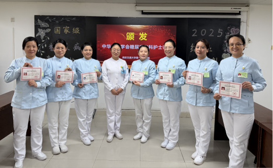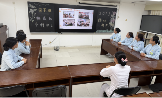 2025年12月4日,西安交通大学第一附属医院顺利完成第五期国家级糖尿病专科护士培训班临床实践教学工作,内分泌代谢科作为教学基地为学员举办了毕业典礼,标志着又一批护理专业人才在糖尿病护理领域完成了系统、深入的学习与成长。内分泌代谢科代理护士长张媛媛护士长及带教老师、中华护理学会糖尿病专科护士培训班7位学员参加了活动。