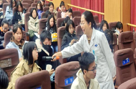 随后,感染科秦丽君护士长主持开展《“艾”的问答,为青春护航》互动环节。围绕讲座内容与常见防艾误区,同学们踊跃抢答,现场气氛热烈。问答以轻松形式巩固知识、澄清误解,并配发精美礼品,有效提升学生参与积极性。感染科许娟护士长、李静护士长及林青护理师全程参与,为活动顺利开展提供有力支持。
