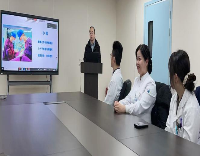 2025年10月随着影像1楼介入手术室新手术间投入使用,根据院方安排,介入手术室开始开展疼痛科手术。为了更好的配合院方对疼痛科的学科规划,保证疼痛科介入手术患者的医疗安全,以及优化疼痛科介入手术配合流程,2025年12月12日,介入手术室与疼痛科医护团队进行深度交流,在影像楼四楼会议室开展系列培训相关活动。本次培训由介入手术室梅娜护士长、白婷副护士长安排规划,疼痛科每晓鹏主任带队、聂会勇教授授课,疼痛科闫芍药护士长,王诗雨医生,以及介入手术室全体护理人员共同参加。
