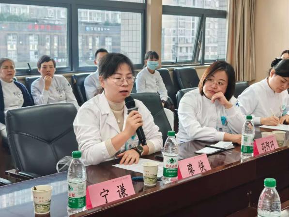 两位专科护士围绕“大咯血患者气道管理与封堵球囊护理”“心肺复苏术后脑保护策略”“危重症患者程序化脱机与康复干预”三大核心目标展开深入交流。针对封堵球囊的位置监测、间歇放气时机,亚低温治疗的温度控制与并发症预防,以及个体化营养支持方案的调整等临床难点,结合《气道腔内球囊封堵治疗咯血专家共识(2025版)》《失血性休克急救护理专家共识》等权威指南,分享了相关临床经验与应对技巧。同时,针对危重症患者院内转运的分级标准、人员物资配置及途中应急处理流程,进行了标准化梳理与优化探讨。宁谦主治医师也深入浅出的讲授了气道腔内球囊封堵术在大咯血救治中的应用与护理配合。