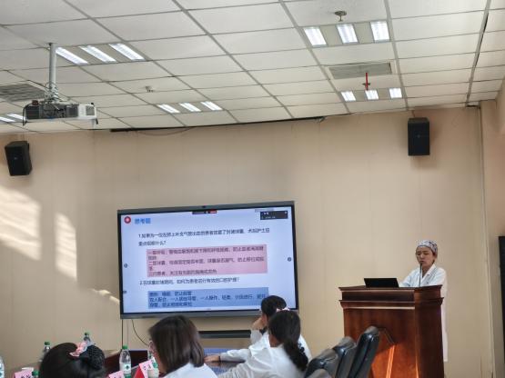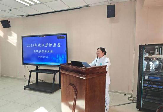 为持续提升护理人员在危重症患者救治中的专业理论水平与临床思维能力,12月16日,护理部呼吸护理专业组以“一例大咯血心肺复苏术后患者的护理”为主题,组织开展了一场院级护理查房。参与此次查房的有营养科廖侠主任,神经康复辖区胡晓红总护长,综合内科第三辖区曹敏总护长,护理部继续教育组黄葶老师,急诊科副护士长孙阿巧老师,重症医学科副护士长王敏娜老师,呼吸专业组组长、综合内科第一辖区冯思芳总护士长,呼吸科王沙沙副护士长。由呼吸科巫瑞副护士长担任主持,付蓉及易静叶两位国家级ICU专科护士进行病例相关汇报,宁谦主治医师讲解疾病的相关知识。