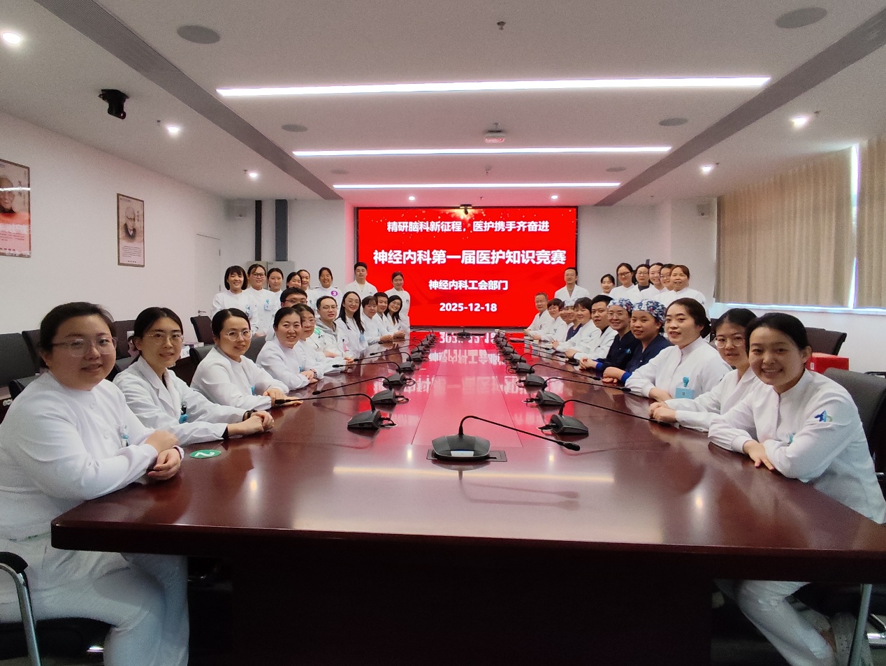 2025年12月18日下午,以“精研脑科新征程,医护携手齐奋进”为主题的第一届神经内科医护知识竞赛在陆港院区第二会议室成功举办。此次竞赛既是科室以赛促学、锤炼队伍的重要举措,更是对陆港院区开诊一年来工作的年终总结与成果献礼,为科室首年发展画上圆满句号。