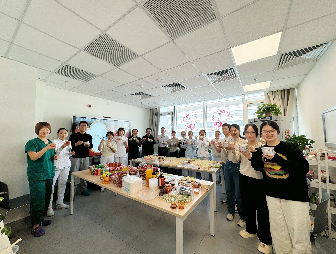 在等待饺子出锅的间隙,活动穿插了冬至猜谜环节。现场参与者积极踊跃抢答,护士长为答对者颁发奖品,将活动氛围推向高潮。精心准备的惊喜小奖品,让科室医护人员及实习生深切感受到冬至佳节的浓厚温情。片刻后,热气腾腾的饺子陆续出锅,浓郁香气弥漫整个科室。大家有序品尝亲手制作的成果,共享这场呼吸胸外科的冬至家宴。护士长提前在部分饺子中包入红枣作为“幸运饺子”,为吃到“幸运饺子”的同事送上精心准备的奖品,现场洋溢着喜悦的笑容。用餐结束后,大家还为值班同事预留了煮好的饺子及蘸料,确保节日的温暖传递给每一位坚守岗位的“家人”。