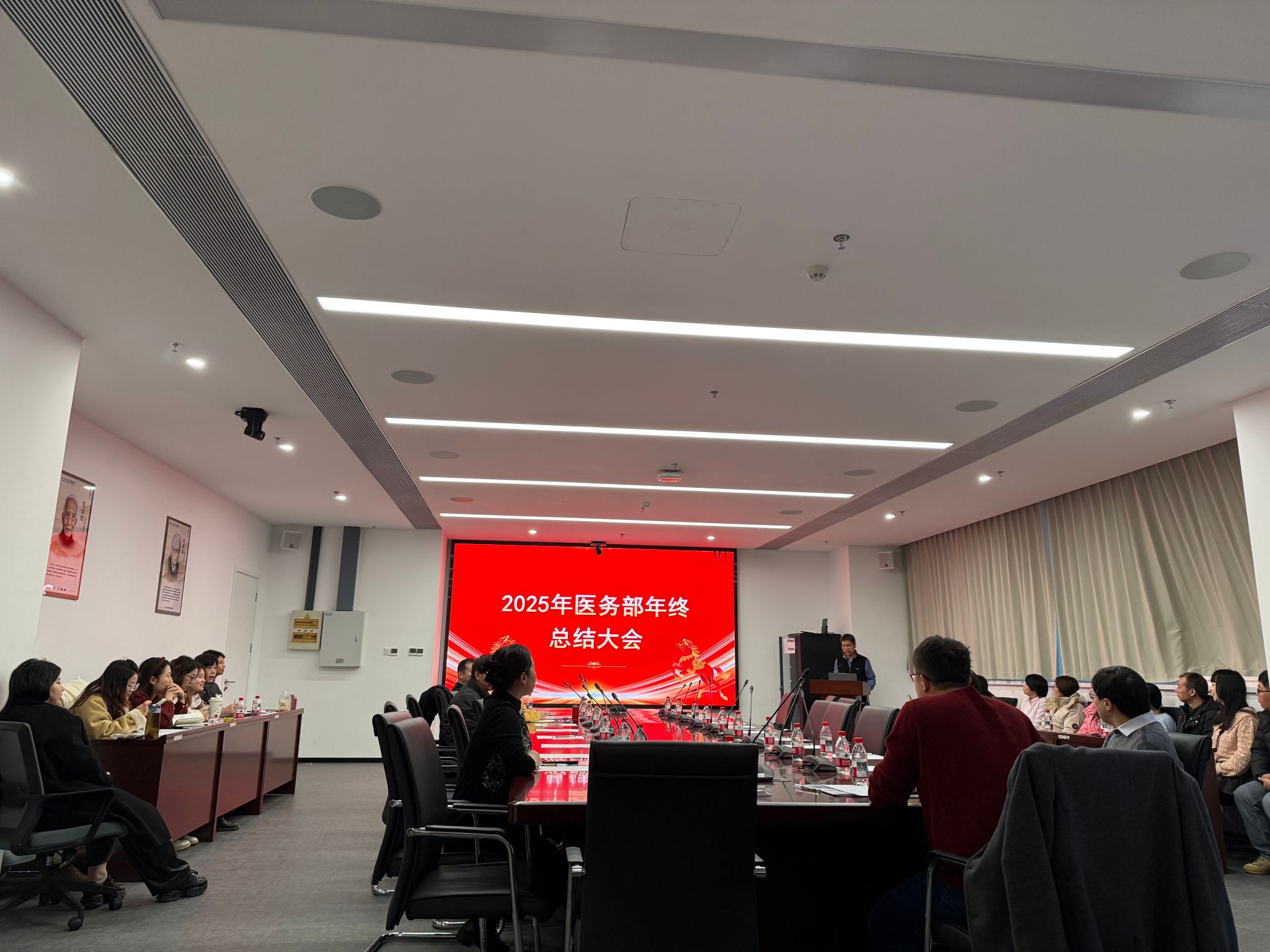 2025年12月21日,院长助理、医务部部长王铮召集医务部9名中层干部及医政管理办公室、质量控制办公室、感染控制办公室、患者投诉与纠纷管理办公室37位老师召开2025年医务部职员年终总结大会。