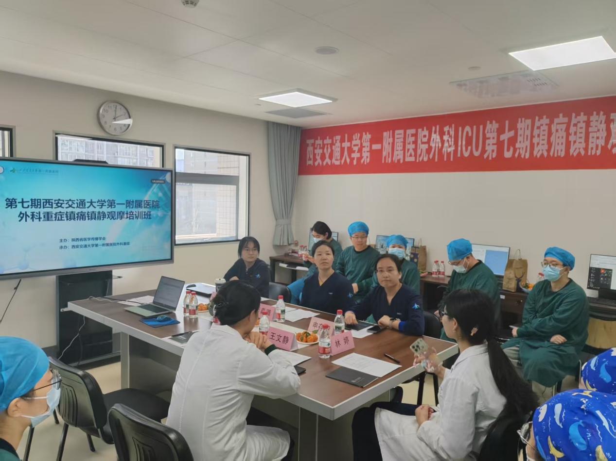 为持续提升外科重症患者围术期镇痛镇静管理的规范性与精准性,加强医护协作与临床实践能力,西安交通大学第一附属医院外科重症医学科于2025年12月25日下午在医生办公室举办了第七期“镇痛镇静交流分享会”。本次会议以“临床观摩交流”为主题,围绕镇痛镇静的评估、实施与安全管理展开系统研讨与实操分享。来自西安、汉中、宝鸡、商洛、渭南等多地的ICU医生参与本次会议。