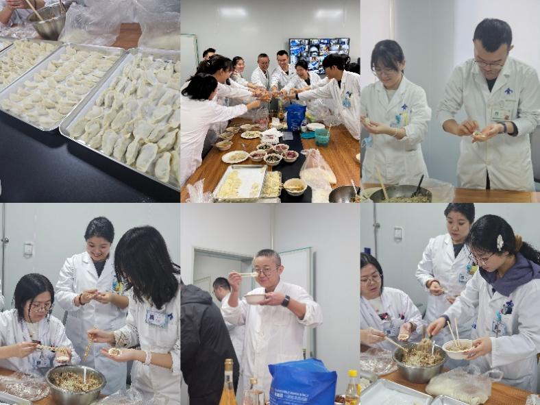 活动当天,结束繁忙工作的药师们齐聚一堂。大家洗净双手,跃跃欲试。有经验丰富的“老师傅”娴熟地擀皮、填馅、捏合;也有初次尝试的“新手”不断取经,从生疏到熟练。大家一边包饺子,一边交流工作和生活心得,畅谈家乡不同的冬至习俗与饺子包法。在所有人的共同努力下,各式各样饱满精巧的饺子很快制作完成。不一会,热腾腾的饺子出锅,香气四溢。大家围坐在一起,共同品尝劳动成果,纷纷点赞"自己包的饺子就是香!”