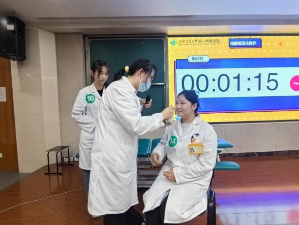 第二环节“规范化技能操作”作为核心竞技项目,聚焦临床实用技能,涵盖康复评定、物理治疗、作业治疗等关键操作。参赛选手们身着专业服饰,严格遵循操作规范,动作娴熟精准、流程有条不紊,从患者评估、方案制定到技术实施,每一个细节都彰显着严谨的职业态度与过硬的实操能力。评委们围绕操作规范性、技术熟练度、人文关怀等维度进行细致打分与现场点评,为选手们指出改进方向。